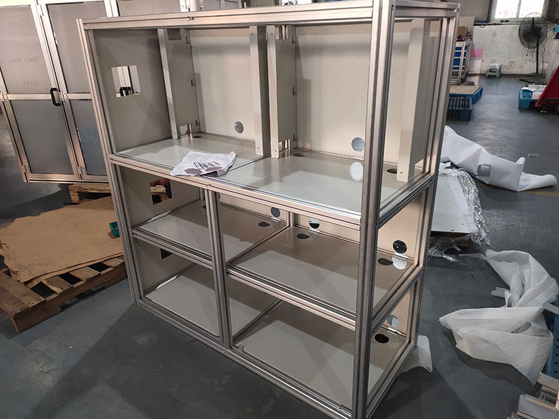 控制柜的主要功能是放置電氣設備,因此,需要選擇規格合適鋁型材進行制造,例如4040型材和4080型材,以及規格較大的6060型材、8080型材、80120型材、9090型材、100100型材。型材的具體規格可根據不同的承重要求選擇。