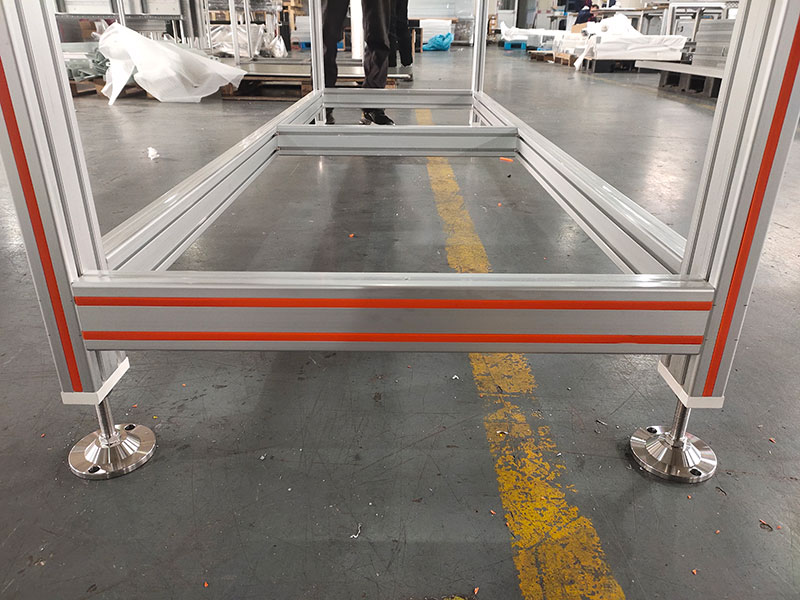 安裝蹄腳需要用到另外一種鋁型材配件——端面連接板,它們之間都是配套使用的,安裝非常簡單,用配套的螺栓螺母即可連接。