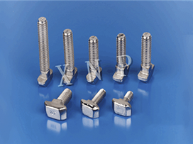 材料:碳鋼(表面鍍鋅或鍍鉻);用途;T型螺栓直接放入型材槽內,安裝過程中它能自動定位鎖緊,常與法蘭螺母配合使用,是安裝角件等型材配件的好幫手。根據不同型材、槽寬及安裝要求可選用不同規格及長度的T型螺栓。
